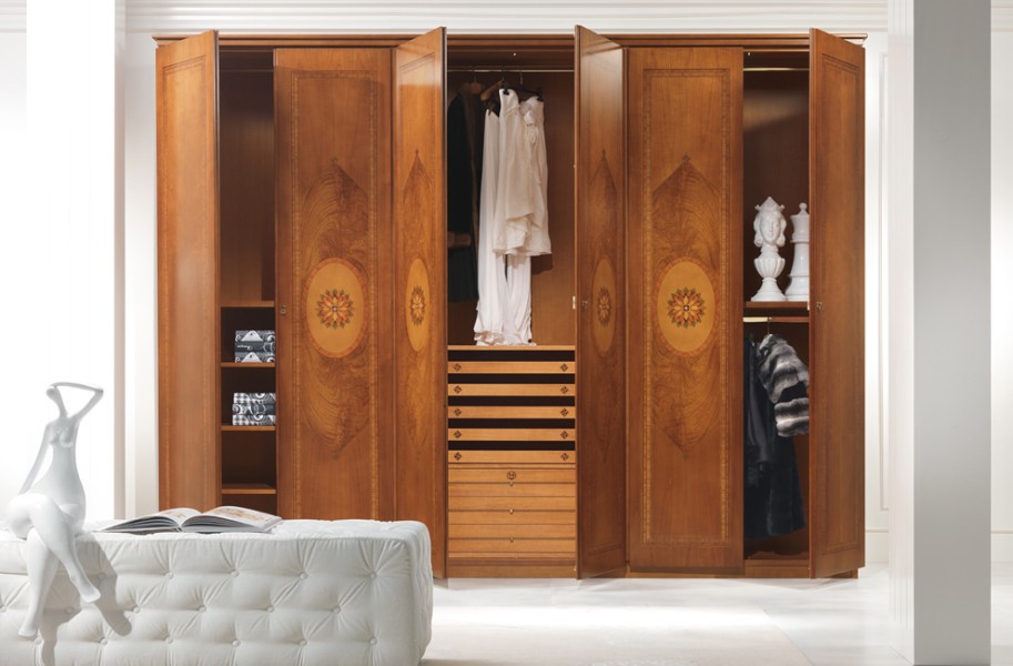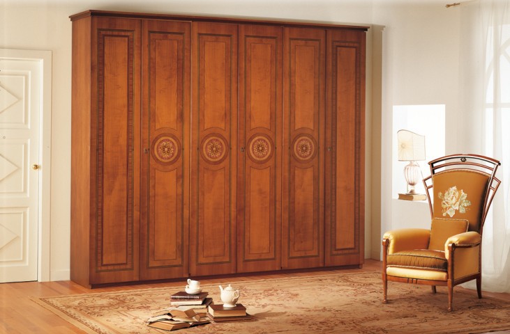 Di linea classica, a 6 ante, in noce con fasce in radica,