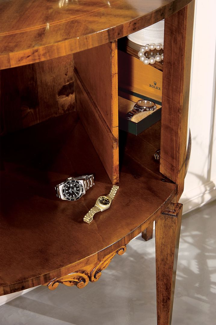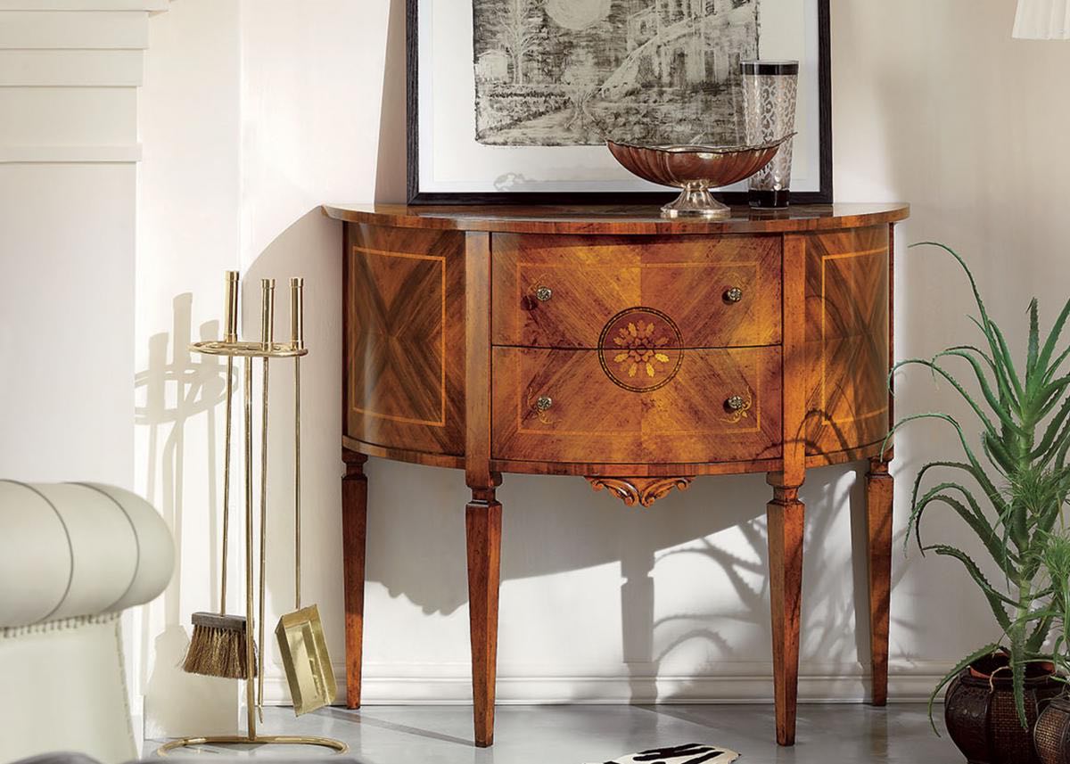 Mobile realizzato con pannelli in listellare intarsiato con legni pregiati e struttura in legno massello