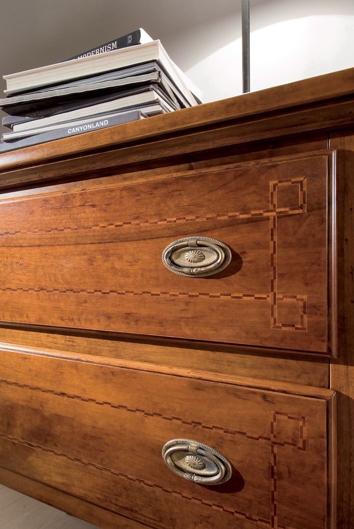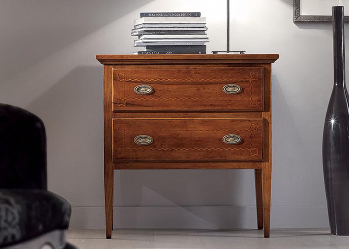 Descrizione Comoncino d'entrata stile Luigi XVI con filetti a greca in noce massello