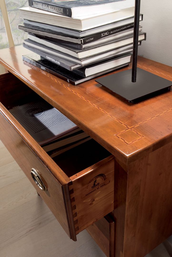 Mobile realizzato con pannelli in listellare di ciliegio europeo, con struttura in legno massello
