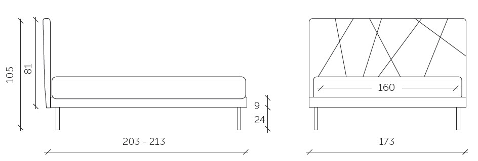 Gli innesti allungabili fino a 10 cm, presenti tra rete e testata, permettono l’utilizzo di materassi con profondità da 190 cm a 200 cm (nella versione con rete da 190) e materassi con profondità da 200 cm a 210 cm (nella versione con rete da 200). In questa versione sono disponibili tre differenti piedini in legno o metallo.