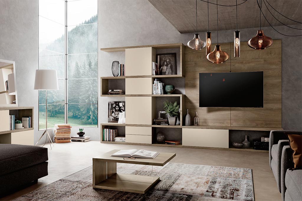 Con struttura in finitura quercia e i frontali in orzo opaco,