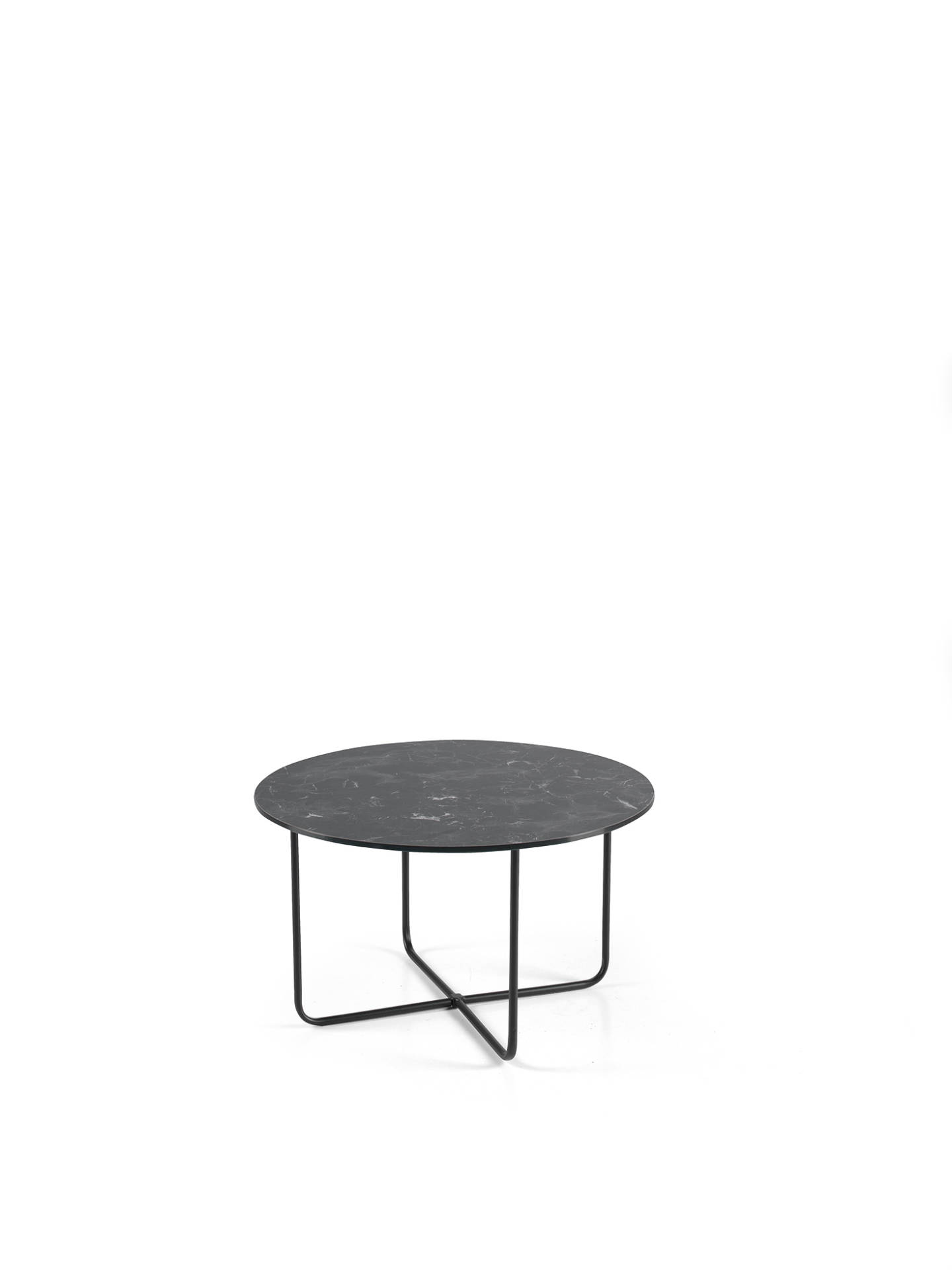 Tavolino tondo con base in metallo verniciato nero