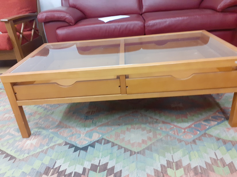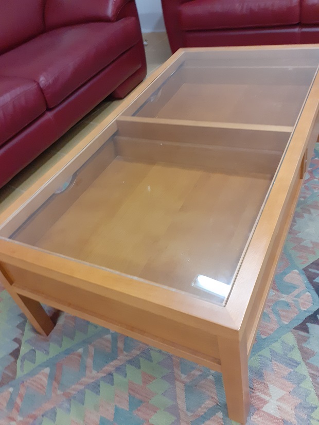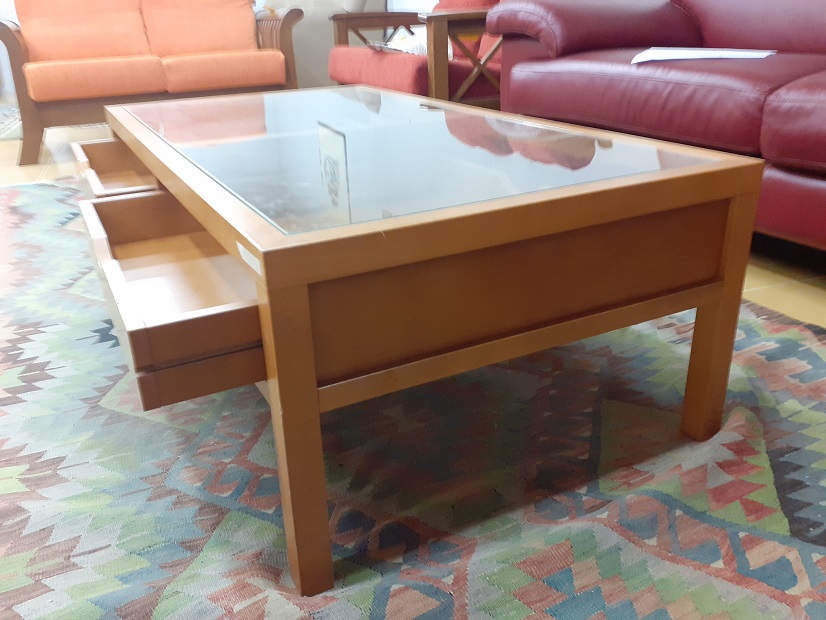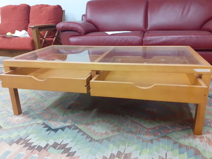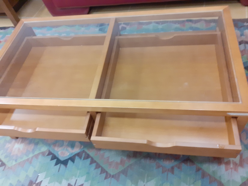 Piano in vetro e due cassetti estraibli da entrambi i lati .