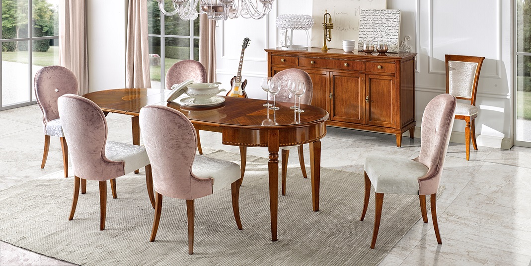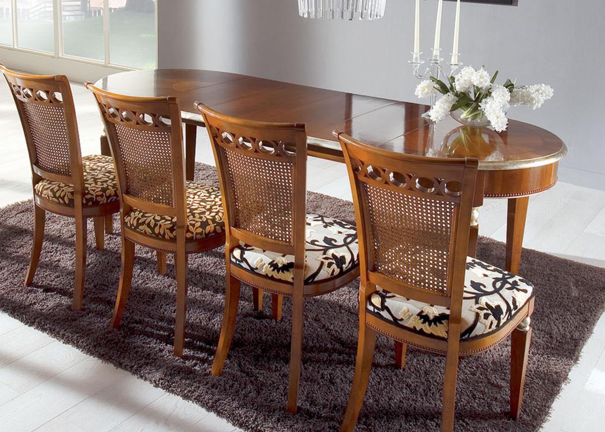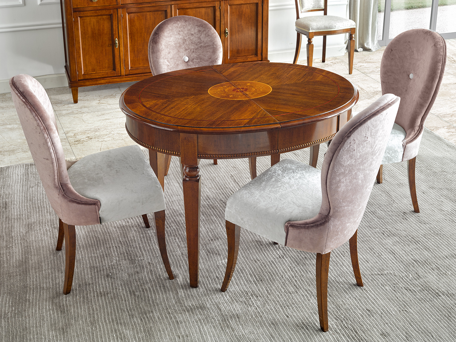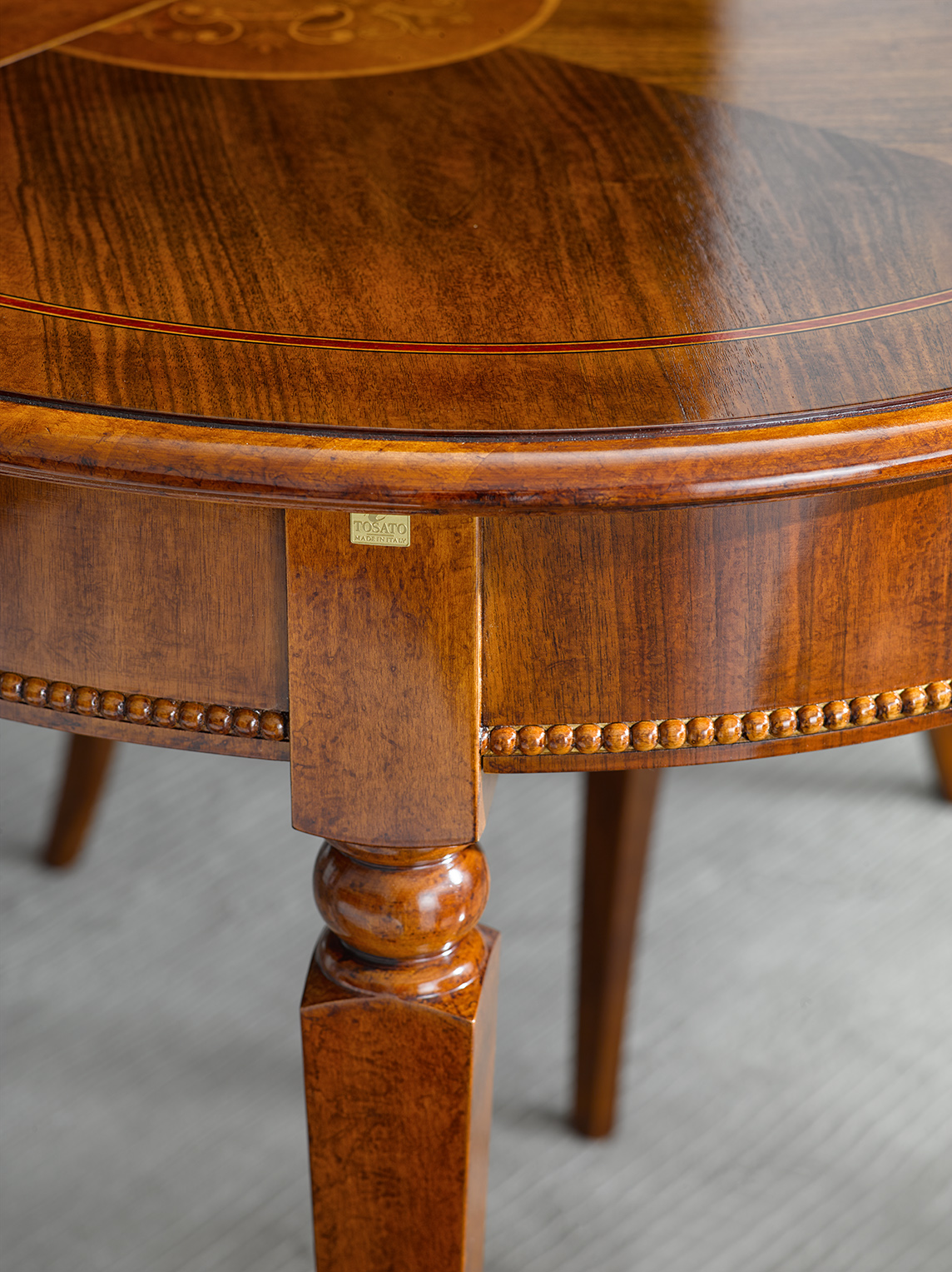 Tavolo allungabile ovale intarsiato con 4 allunghe