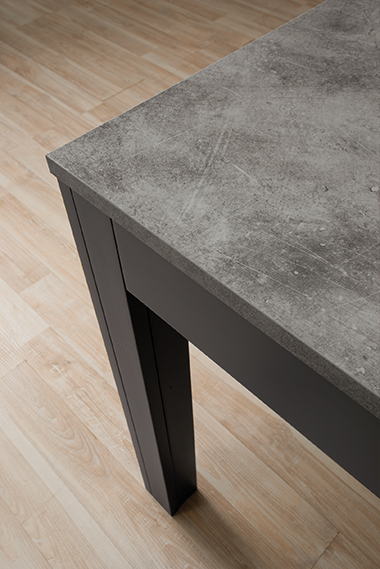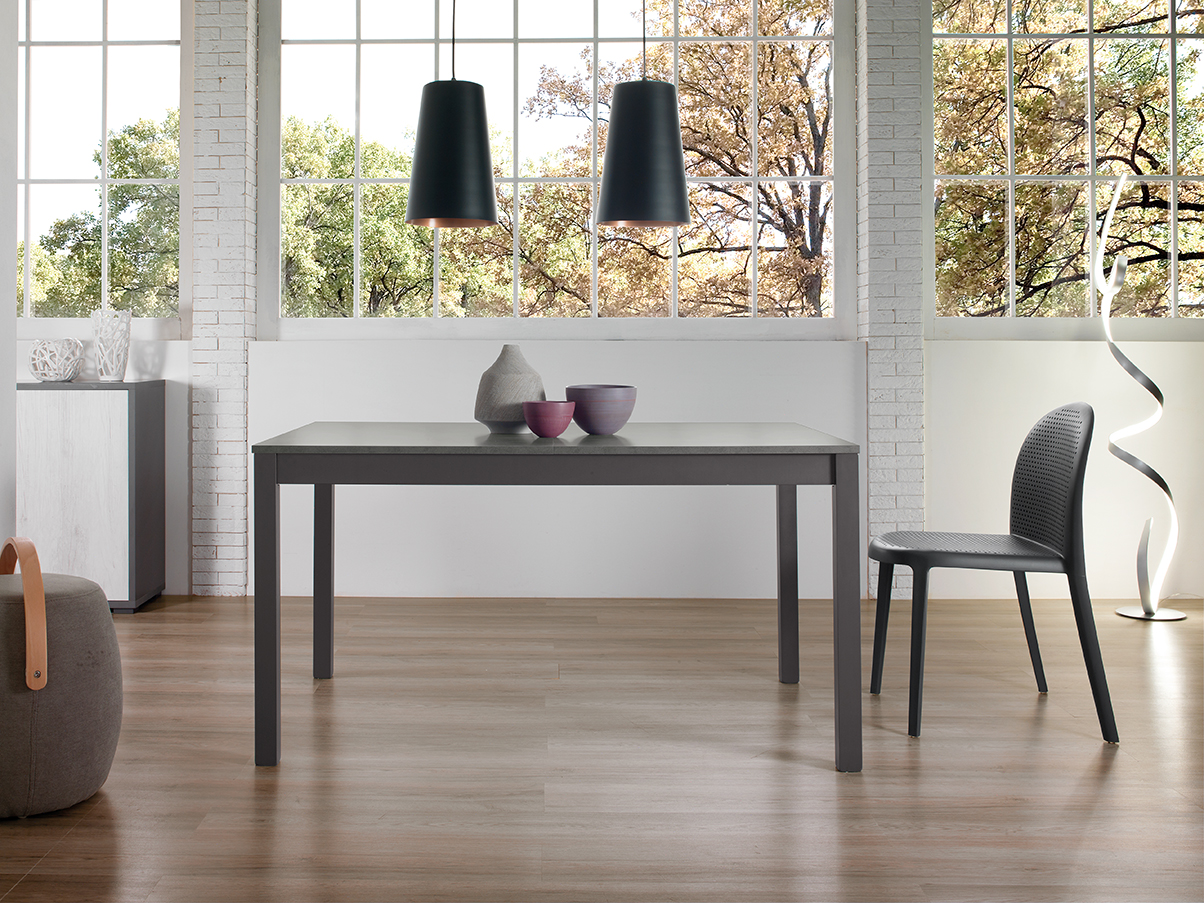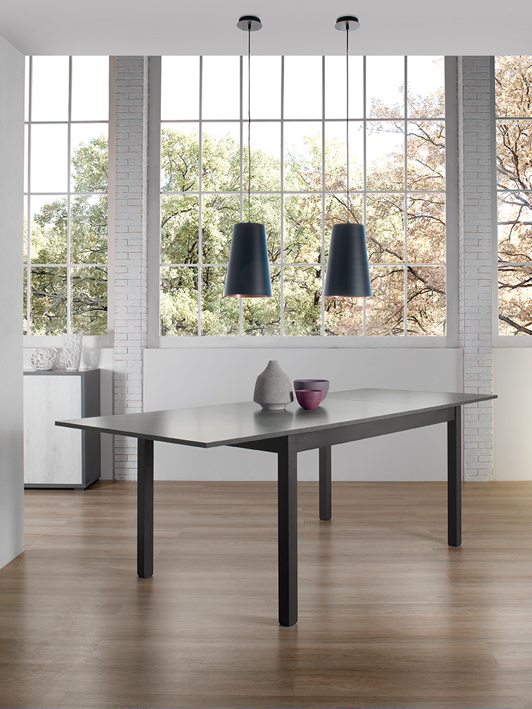 Tavolo allungabile con due allunghe centrali da 43 cm. Disponibile in diversi colori.