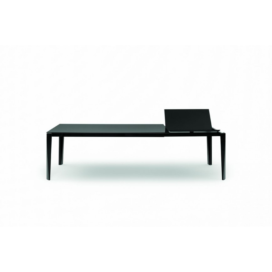 dei piani in vetro che hanno la prolunga laccata opaca in tinta con il piano.