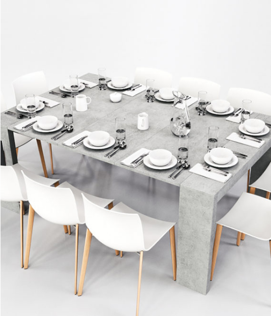• 90 x 44 cm aperta 90 x 186 cm (3 allunghe – 8 posti)