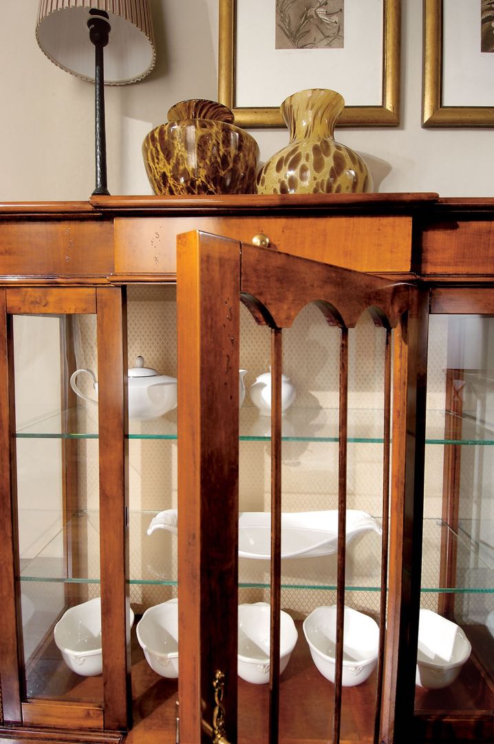 Mobile realizzato con pannelli in listellare impiallacciato di ciliegio, con struttura in massello